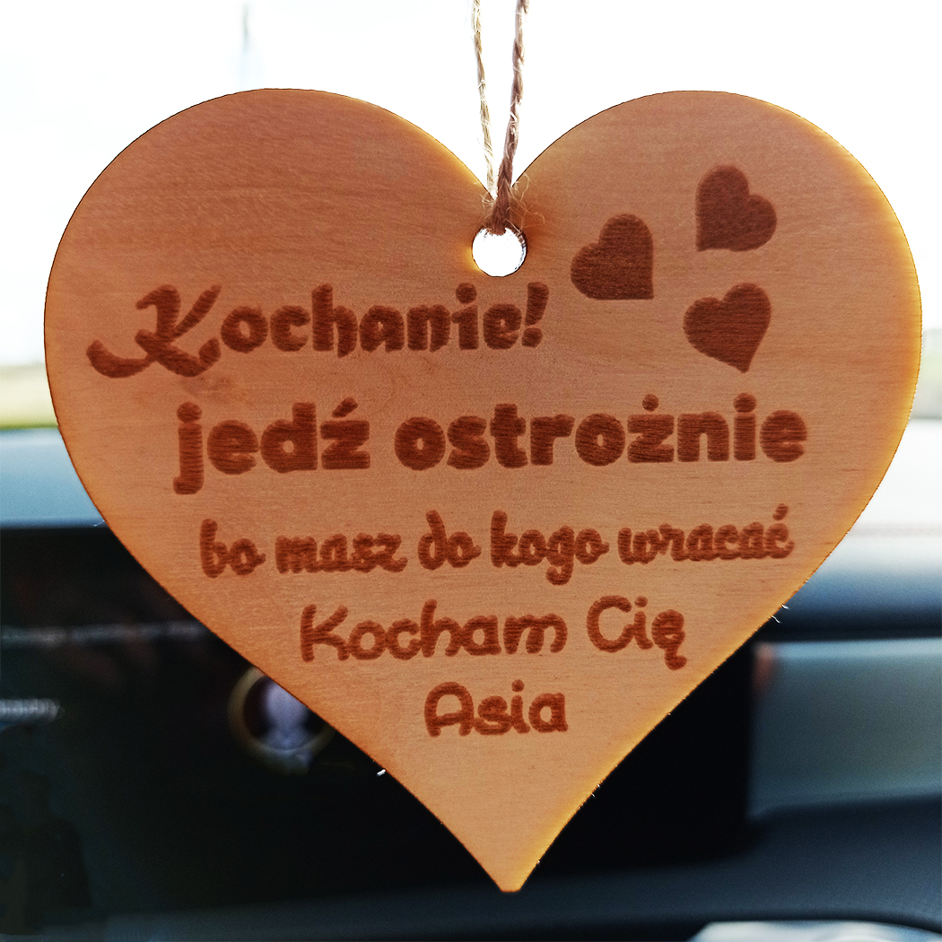Drewniana zawieszka do samochodu na prezent dla drugiej połówki