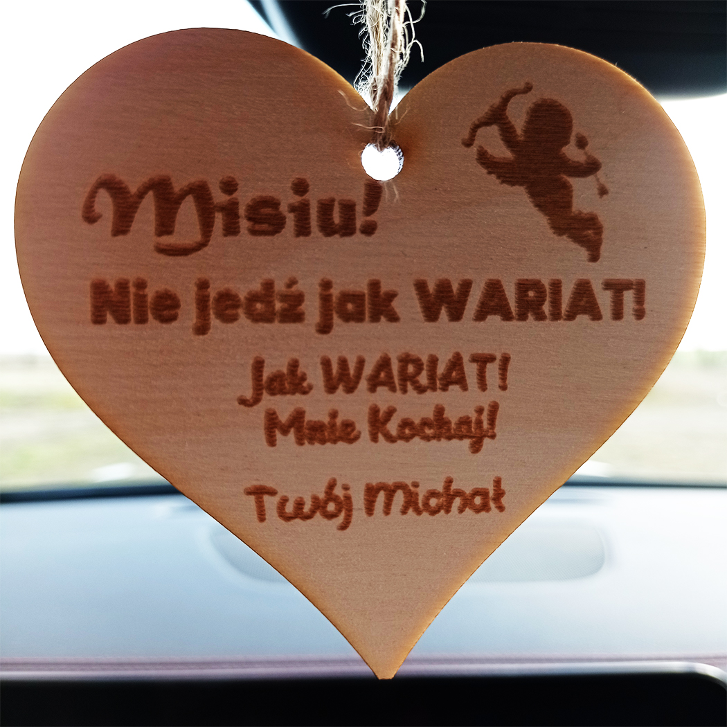 Drewniana zawieszka do samochodu na prezent dla drugiej połówki