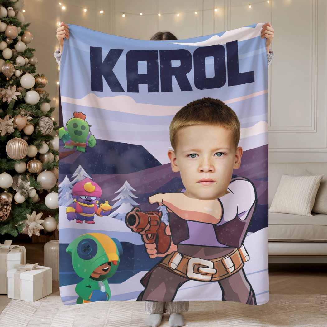 Personalizowany koc z twarzą i imieniem dziecka – dla małego fana Brawl Stars