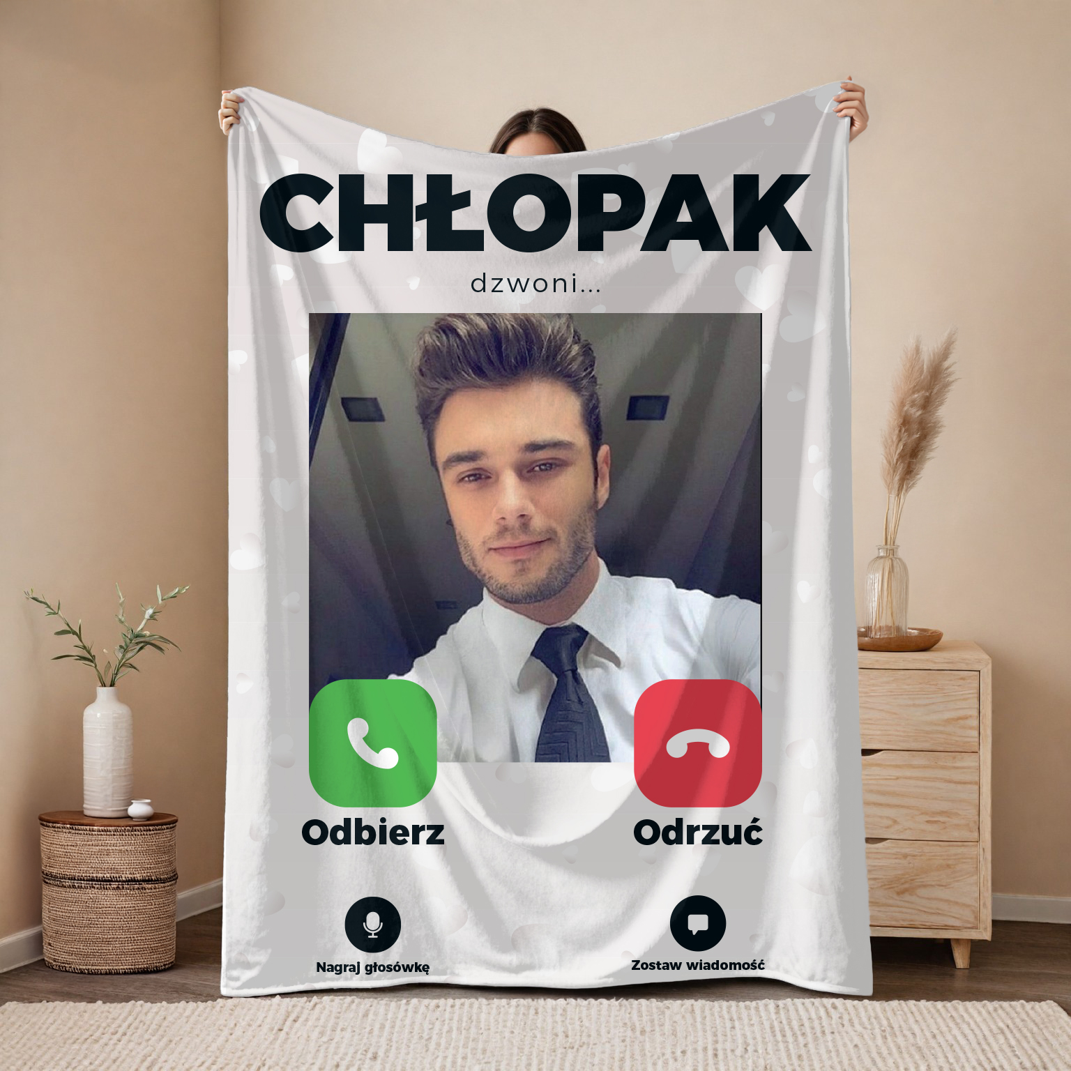 Personalizowany śmieszny koc z zdjęciem Chłopak Dzwoni
