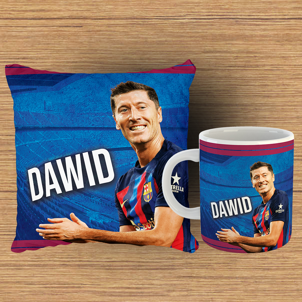 Poduszka i kubek z imieniem prezent dla fana Lewandowskiego