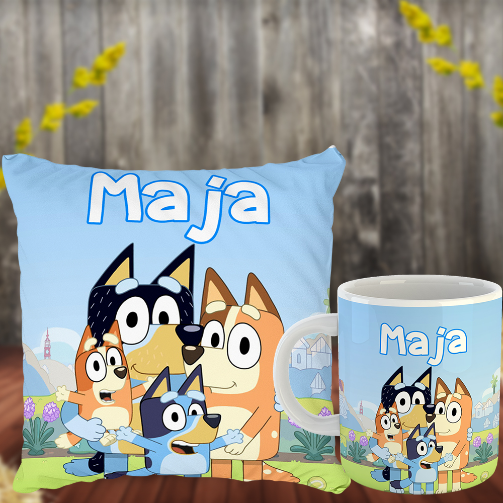 Poduszka i kubek prezent dla fana Bluey Blue