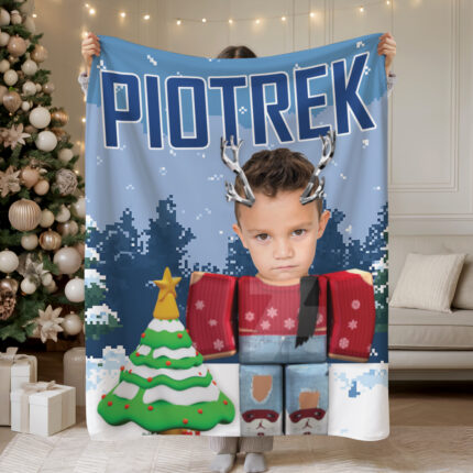 Personalizowany koc z twarzą i imieniem dziecka dla fana Roblox