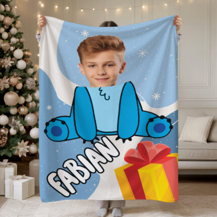 Personalizowany koc z twarzą i imieniem dziecka dla fana Stitcha