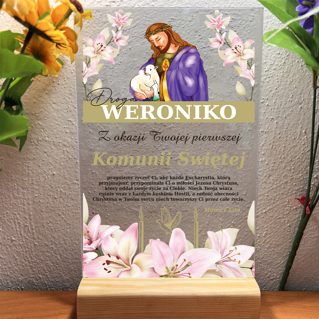 Oryginalny prezent na pierwszą komunię? Oto idealna propozycja! Nasz personalizowany stand akrylowy na drewnianej podstawce to wyjątkowy sposób na uczczenie tego wyjątkowego dnia.